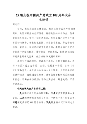 XX庆祝中国共产党成立102周年大会主持词(2023年度).docx