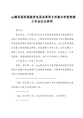 xx镇巩固拓展脱贫攻坚成果同乡村振兴有效衔接工作会议主持词.docx