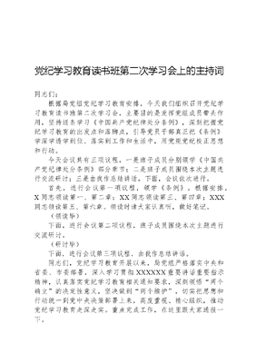 党纪学习教育读书班第二次学习会上的主持词.docx