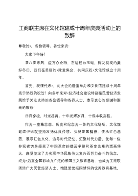 工商联主席在文化馆建成十周年庆典活动上的致辞.docx