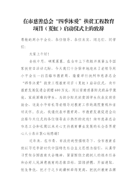 吴建发局长在市慈善总会“四季沐爱”扶贫工程教育项目(夏虹)启动仪式上的致辞.docx