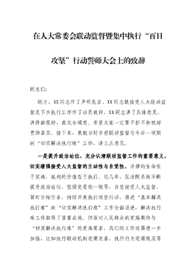 在人大常委会联动监督暨集中执行“百日攻坚”行动誓师大会上的致辞.docx