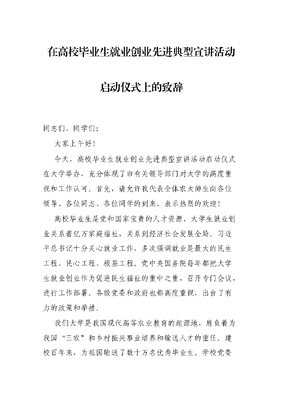 在高校毕业生就业创业先进典型宣讲活动启动仪式上的致辞.docx