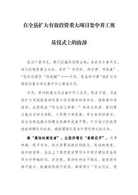 在全县扩大有效投资重大项目集中开工奠基仪式上的致辞.docx