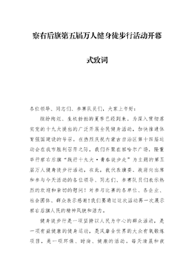 察右后旗第五届万人健身徒步行活动开幕式致词.docx