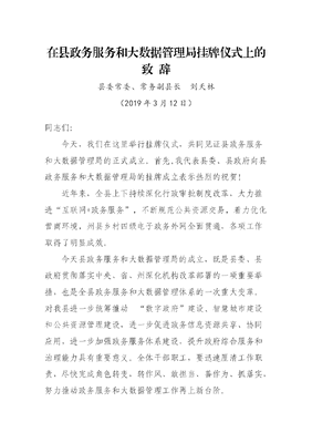 在县政务服务和大数据管理局挂牌仪式上的致.docx