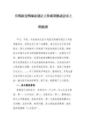 在巩固文明城市创立工作成果推动会议上的致辞.docx