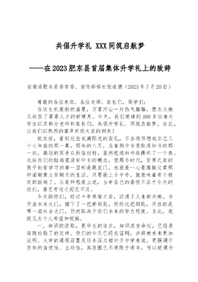 共倡升学礼 同筑启航梦——在2023肥东县首届集体升学礼上的致辞.docx