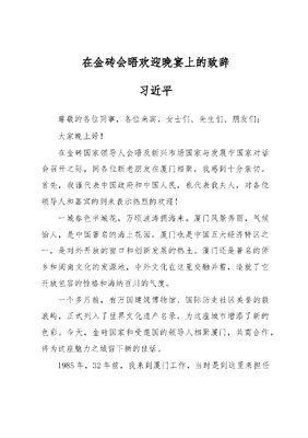 在金砖会晤欢迎晚宴上的致辞.doc