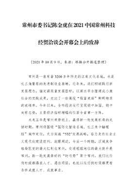 常州市委书记陈金虎在2021中国常州科技经贸洽谈会开幕会上的致辞.docx