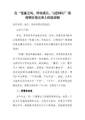 在“党廉之风,伴我成长,与您同行”微视频征集比赛上的致辞稿.docx