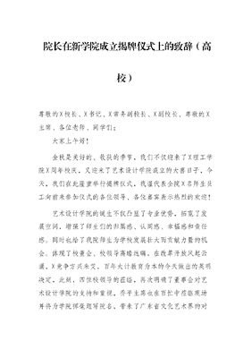 院长在新学院成立揭牌仪式上的致辞(高校).docx