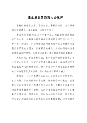 王永康世界西商大会致辞.doc