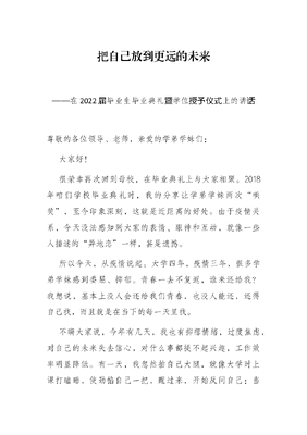 把自己放到更远的未来——在2022届毕业生毕业典礼暨学位授予仪式上的讲话.docx