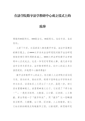 在法学院数字法学教研中心成立仪式上的致辞.docx
