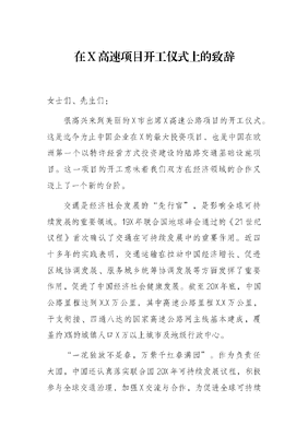 在X高速项目开工仪式上的致辞.docx