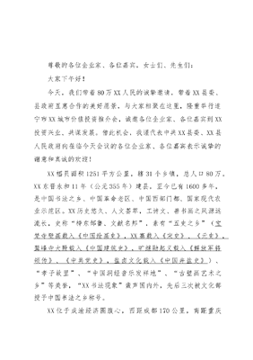在2017年XX县城市价值投资推介会上的致辞.doc