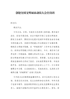创建全国文明城市动员大会主持词.docx