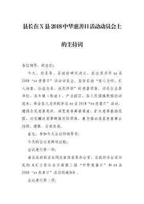 县长在X县2018中华慈善日活动动员会上的主持词.docx