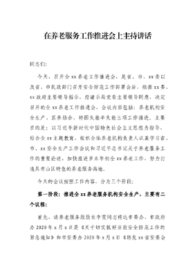 在养老服务工作推进会上主持讲话.docx
