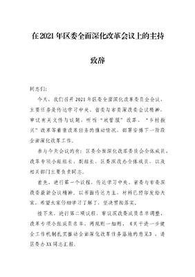 在2021年区委全面深化改革会议上的主持致辞.docx