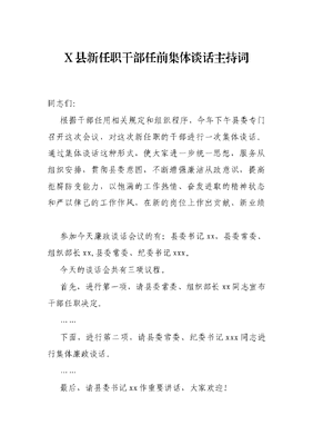 X县新任职干部任前集体谈话主持词.docx