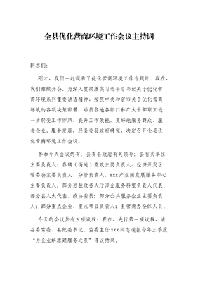 全县优化营商环境工作会议主持词.docx