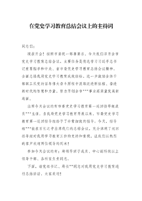 在党史学习教育总结会议上的主持词.docx