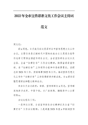 2022年全市宣传思想文化工作会议主持词范文.docx