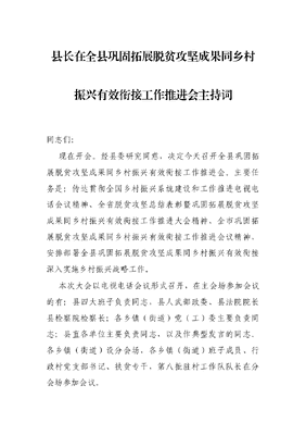 县长在全县巩固拓展脱贫攻坚成果同乡村振兴有效衔接工作推进会主持词.docx