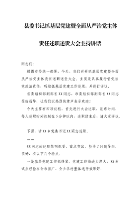 县委书记抓基层党建暨全面从严治党主体责任述职述责大会主持讲话.docx
