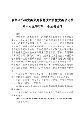 在集团公司党委主题教育读书班暨党委理论学习中心组学习研讨会主持讲话.docx