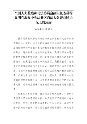 全国人大监察和司法委员会副主任委员徐显明在海丝中央法务区启动大会暨首届论坛上的致辞.docx