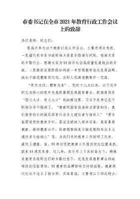 市委书记在全市2021年教育行政工作会议上的致辞.docx
