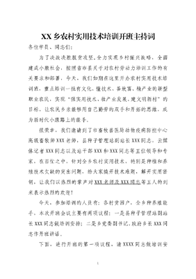 就业工作农村实用技术劳动力培训开班主持词.doc