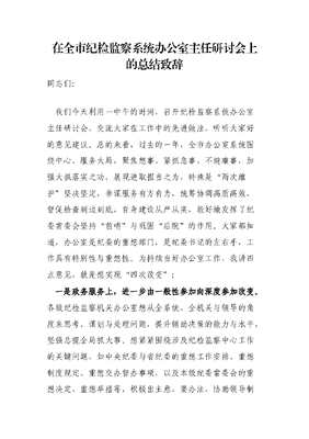 在全市纪检监察系统办公室主任研讨会上的总结致辞.docx