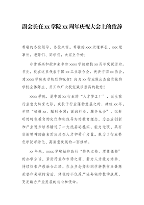 副会长在xx学院xx周年庆祝大会上的致辞.docx