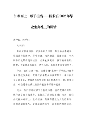 知难而上 敢于担当——院长在2022年毕业生典礼上的讲话.docx