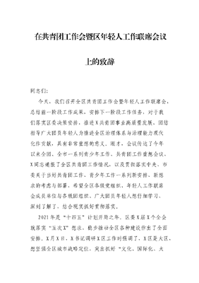 在共青团工作会暨区年轻人工作联席会议上的致辞.docx