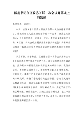 区委书记在区政协X届一次会议开幕式上的致辞.docx