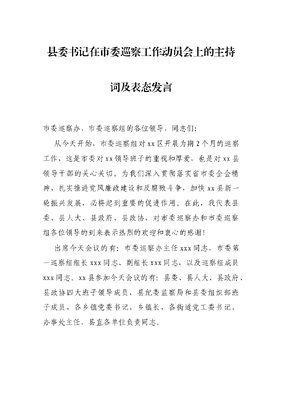 县委书记在市委巡察工作动员会上的主持词及表态发言.docx