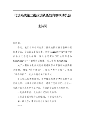 司法系统第二批政法队伍教育整顿动员会主持词.docx