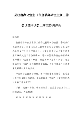 县政府办公室主任在全县办公室主任工作会议暨培训会上的主持词讲话.docx