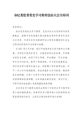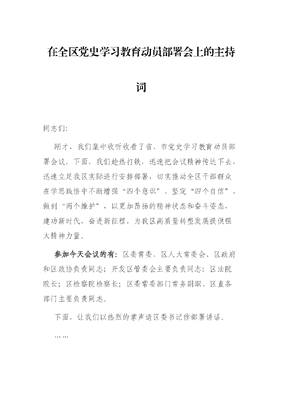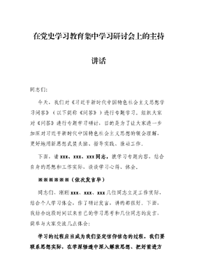 在党史学习教育集中学习研讨会上的主持讲话.docx