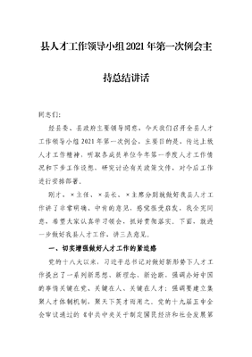 县人才工作领导小组2021年第一次例会主持总结讲话.docx