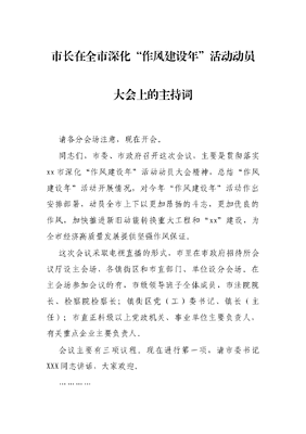 市长在全市深化“作风建设年”活动动员大会上的主持词.docx