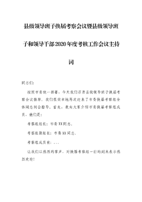 县级领导班子换届考察会议暨县级领导班子和领导干部2020年度考核工作会议主持词.docx