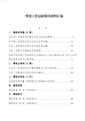 (9篇)一季度工作总结、主持词等相关材料汇编.docx