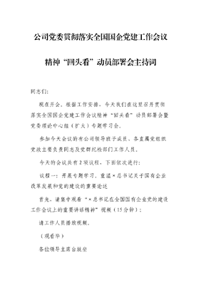 公司党委贯彻落实全国国企党建工作会议精神“回头看”动员部署会主持词.docx