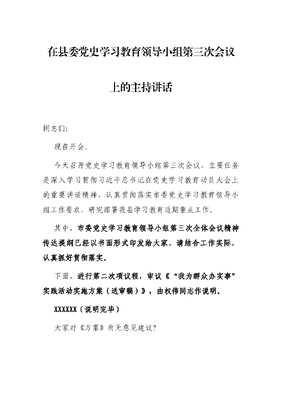 在县委党史学习教育领导小组第三次会议上的主持讲话.docx